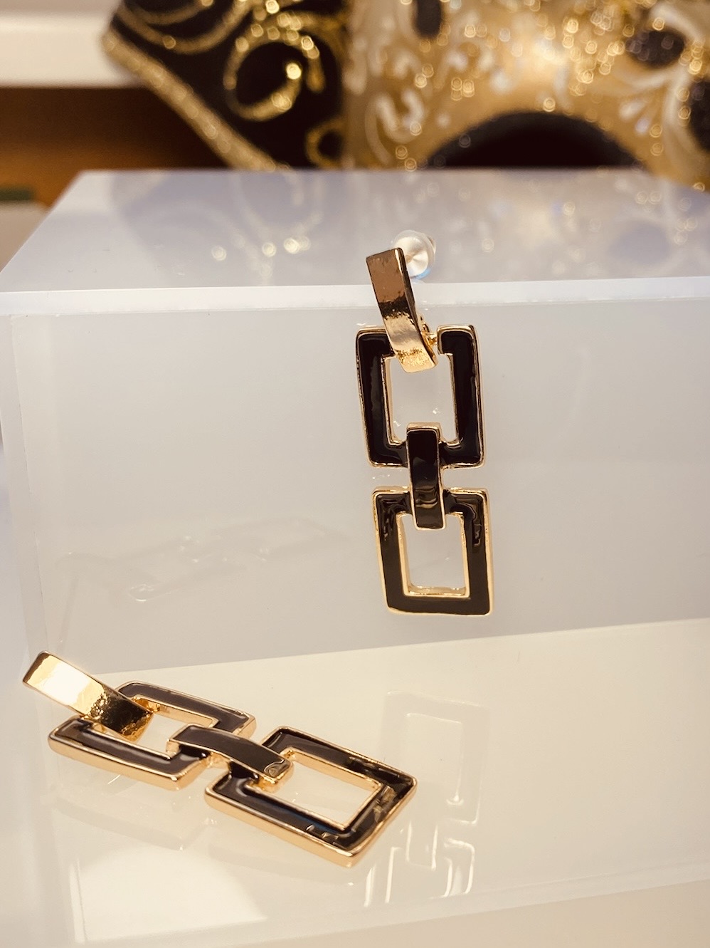 BRINCO DOIS RETÂNGULOS | DOURADO E PRETO